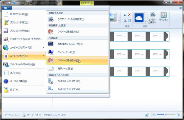 WindowsムービーメーカーでDVDを焼くということより、動画を編集してからDVDへの書き込み可能のムービーとして保存することです。実にWindows DVD メーカーを通じて焼いたムービーをDVDに作成します。では、これからムービーメーカーでDVD動画に変換する方法を紹介いたします。